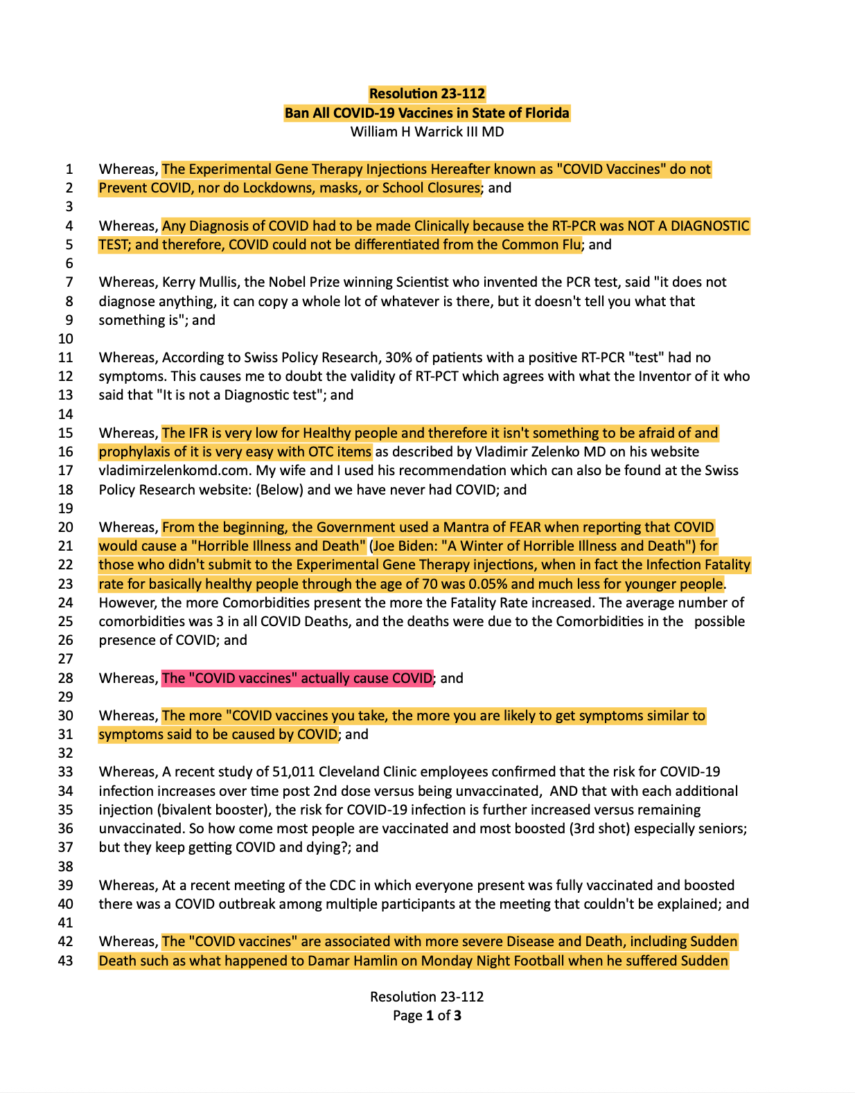 And while the AMA issues statements condemning disinformation, its state affiliates have actively entertained it. In 2023, the Florida Medical Association delegate handbook included Resolution 23-112, called for banning all COVID-19 vaccines in Florida. The resolution is riddled with well-documented COVID-19 disinformation, including false claims that vaccines cause COVID-19, that PCR tests are not diagnostic, and that the pandemic was a U.S. military operation involving biological weapons. The resolution also cites discredited sources like The Epoch Times, a known hub for conspiracy theories, and Rumble, a platform associated with right-wing extremist content.